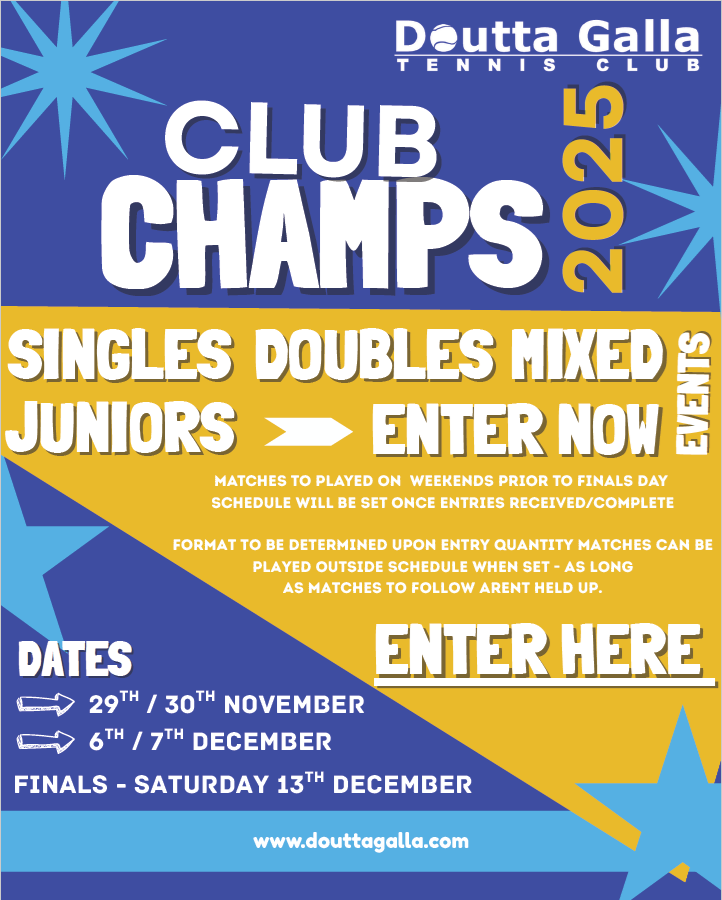 The Club’s Annual Club Championships have been announced and will be held during late November, early December with the finals to be played on Saturday 13th December.