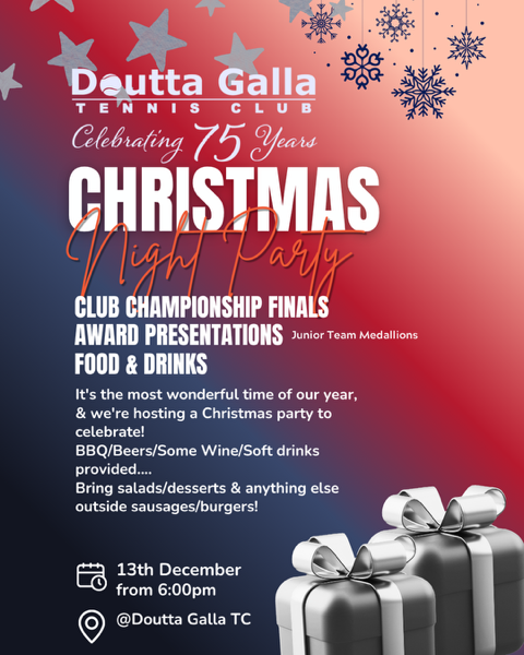 The Club’s annual Christmas Party will be held on Saturday 13th December from 6pm at the Club.